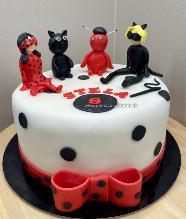 Torta je potiahnutá poťahovou hmotou, zdobená ozdobami z tejto hmoty. Rozmer torty je cca 30 x 40 cm.
