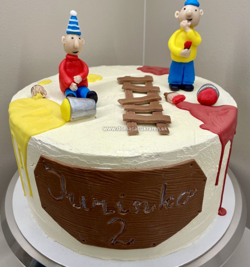 Torta je potiahnutá poťahovou hmotou. Veľkosť torty v najširších miestach je cca 30 x 25 cm.