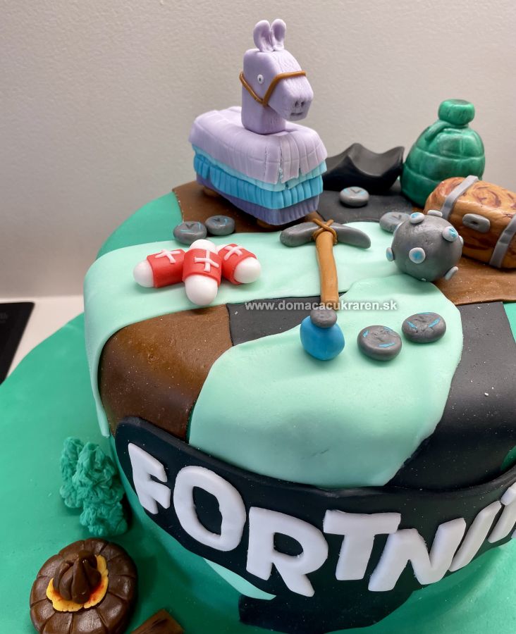 Torta je potiahnutá poťahovou hmotou, zdobená ozdobami z tejto hmoty. Priemer torty je 24 cm.