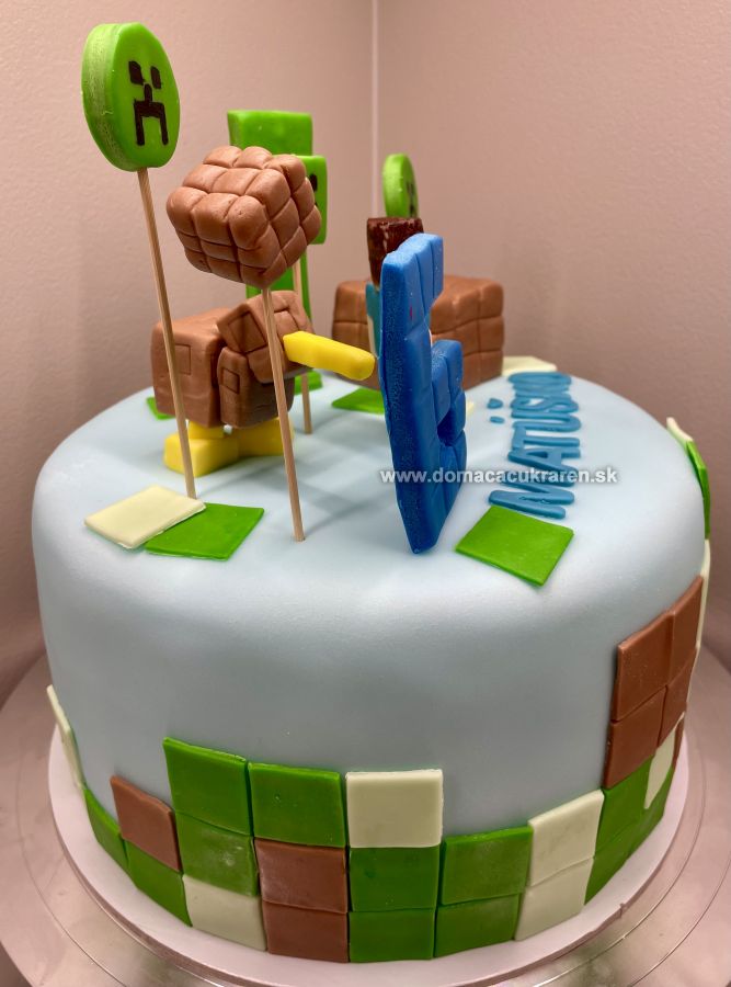 Torta je potiahnutá poťahovou hmotou, zdobená ozdobami z tejto hmoty. Priemer torty je 24 cm.
